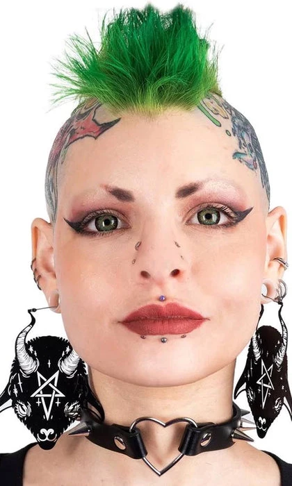 These baby goat earrings are inspired by the devil tarot, embedded with a pentagram on the Baphomet’s forehead, these earrings are for the strange and unusual. Wiccans unite!